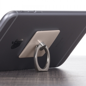 Suporte plástico para celular com alça giratória, parte traseira com adesivo. Para utilizar basta tirar o lacre e colar a peça na parte traseira do celular, pode ser utilizado como suporte para manter o celular em pé ou utilizado como anel anti-furto(cola